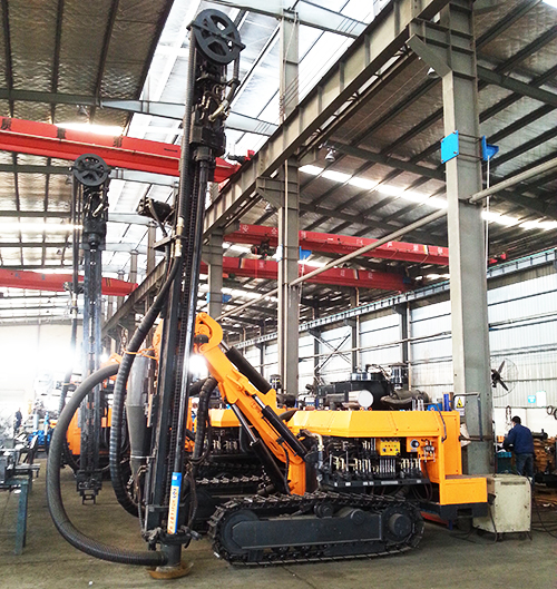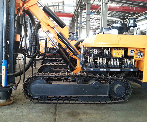 KG960型露天潛孔鉆車是我公司根據(jù)礦山要求和運(yùn)用成熟的液壓技術(shù)而精心設(shè)計(jì)的一款自行式液壓鑿巖設(shè)備。具有外形美觀、操作方便、性能穩(wěn)定的特點(diǎn)。通過(guò)優(yōu)化的液壓元件配置,可適用不同巖層的鉆鑿孔作業(yè)。大功率四缸康明斯發(fā)動(dòng)機(jī),可適用較高海拔的鉆孔作業(yè)。大扭矩回轉(zhuǎn)減速器提供強(qiáng)勁的回轉(zhuǎn)扭矩,可滿足較大及較深孔徑的鉆鑿作業(yè)。是露天采礦、道路修建、隧道開鑿等工程方面的理想鑿巖設(shè)備。KGH8型露天潛孔鉆車是在KG960型露天潛孔鉆車上加裝鑿巖集塵凈化器,凈化鑿巖作業(yè)環(huán)境,減少環(huán)境污染。