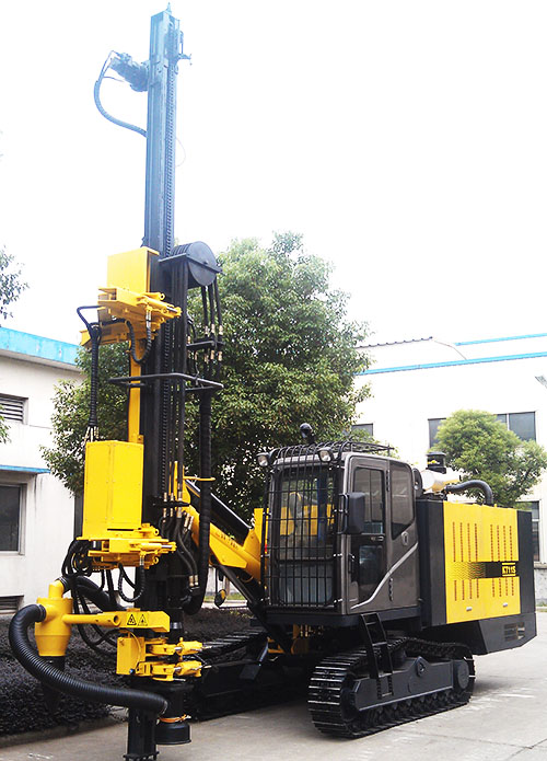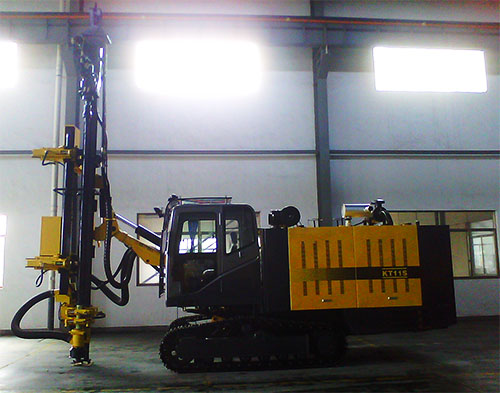 開山牌KT11S型一體式露天潛孔鉆車采用一個動力同時驅(qū)動液壓系統(tǒng)和高風壓螺桿壓縮系統(tǒng)的方式,結(jié)構緊湊,能量利用率高,具備自動接卸桿、駕駛室冷暖空調(diào)、干式集塵等功能模塊。鉆車具有整體性好、環(huán)保節(jié)能、自動化程度高、鑿巖效果好、操作方便、機動靈活、行駛安全等特點。適用于露天礦山、采石場、公路、鐵路、水利、電力、建筑等石方工程中的中、深孔接桿鑿巖作業(yè)。